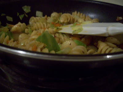 2) Fried noodles, with green tomatoes, cabbage, garlic, and onions.